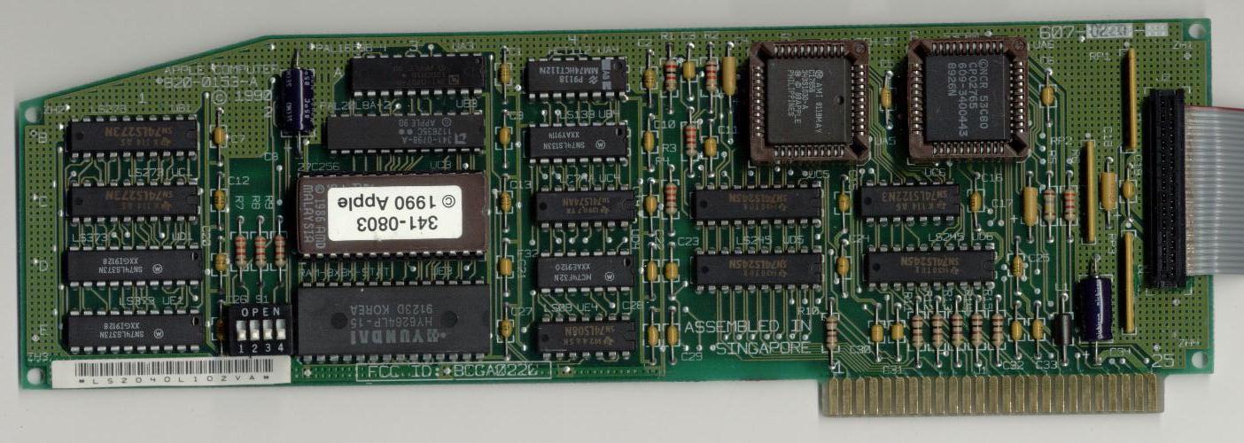 No tak... Pamięć mamy rozszerzoną, GS OS 6.0.1 hula jak trzeba, ale zaczyna być trochę niewygodnie. Ciągłe przerzucanie dyskietek zajmuje dużo czasu. Trzeba pomyśleć o szybszym i pojemniejszym nośniku, jakim jest twardy dysk. Apple produkowało karty z interfejsem SCSI różnych wersji. Pierwszą z nich przedstawia poniższe zdjęcie: